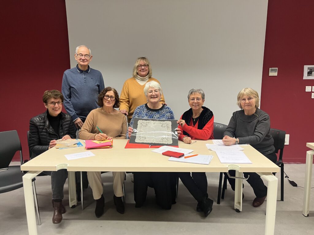 De gauche à droite : Brigitte Lefebvre (vice-présidente), François Delmas (trésorier), Mireille Biron, (secrétaire), Josette Bavette (secrétaire-adjointe), Solange Perrot (présidente), Marie-Noële Charuel (vice-présidente), Ghislaine Marsé-Guerra (trésorière-adjointe)